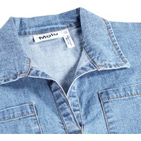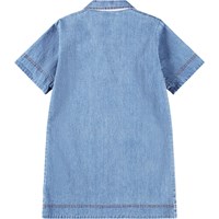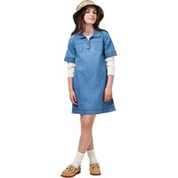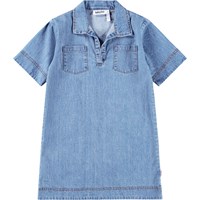 Jeanskleid aus weicher, ökologischer Baumwolle mit aufgesetzten Brusttaschen. Das Kleid hat einen klassischen Kragen, kurze T-Shirt-Ärmel und eine lockere, A-förmige Silhouette, die gute Bewegungsfreiheit und eine schöne Silhouette bietet.