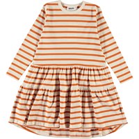 Chia ist ein Orange gestreiftes Kleid. Das Kleid hat lange Ärmel und eine lockere sowie bequeme Passform.
