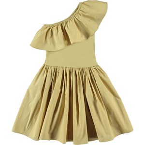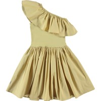 Chloey ist ein beiges One-Shoulder-Kleid mit Rüschen und rund geschnittenem Rock aus Öko-Baumwolle. Das Oberteil ist Chloey aus geripptem Jersey mit Rüschen aus Baumwollpopeline, während der Rock ebenfalls aus Baumwollpopeline ist. Der Rock ist in der Taille gerafft, was für einen voluminösen Effekt und viel Bewegungsfreedom sorgt. Schön sowohl für den Alltag als auch für Partys.