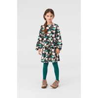 Christabelle ist ein langärmeliges Kleid mit einem Aufdruck aus rosa Seerosen. Das Kleid hat einen Schößchenrock und Ärmel mit etwas Breite.