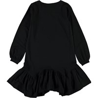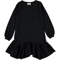 Christen ist ein schwarzes Langarmkleid mit asymmetrischem Unterteil.
