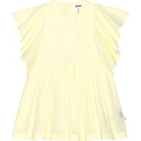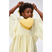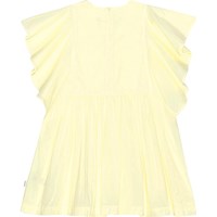Pastellgelbes, voluminöses Kurzarmkleid aus Öko-Baumwolle. Weite Schmetterlingsärmel, lockere Passform und Reißverschluss in der Mitte des Rückens.