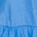 Blaues One-Shoulder-Kleid aus Öko-Baumwolle. Der obere Teil des Kleides hat einen schrägen Schnitt, ist elastisch und hat auf der rechten Seite einen T-Shirt-Puffärmel. Das Kleid ist knielang, hat viele Rüschen, die ihm ein schönes Volumen verleihen und das Anziehen und den Tragekomfort erleichtern.
