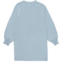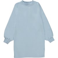 Corvina ist ein hellblaues Sweatshirtkleid, das bis zum Knie reicht. Das Kleid hat eine lockere Passform und ist an Hals und Handgelenken gerippt.Dieses