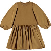 Cosette ist ein braunes Kleid mit weiten Ärmeln und luftigem Rock.