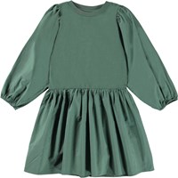 Cosette ist ein grünes Kleid mit weiten Ärmeln und luftigem Rock.