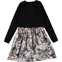 Credence ist ein zweiteiliges, schwarzes, geripptes Kleid mit langen Ärmeln und einem Rock mit Druck von verschiedenem Tieren die ein wunderschönes Muster bilden.