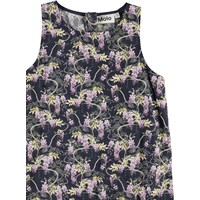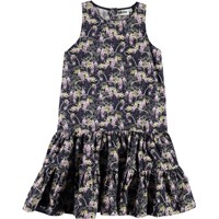 Cybille ist ein dunkles Kleid mit einem schönen Blumendruck. Das Kleid ist ärmellos und hat einen Reißverschluss am Hals.