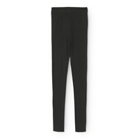 Schwarze Leggings aus elastischem und weichem Viskosestoff. Diese Leggings haben eine eng anliegende Passform mit einem elastischen Bund, sind leicht anzuziehen und angenehm zu tragen.