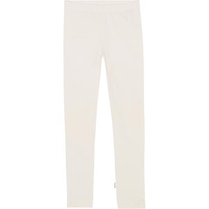 Cremefarbene Leggings aus Öko-Baumwolle. Die Leggings sind eng anliegend und haben einen Gummizug in der Taille, wodurch sie leicht anzuziehen und angenehm zu tragen sind.