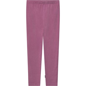 Eng anliegende lila Leggings aus dehnbarem Öko-Baumwolle mit einem elastischen Bund.