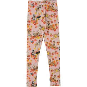 Molos klassische, lange Leggings in Rosa mit Druck von Kaninchen, Hirschen und goldenen Blättern. Sie bestehen aus einer dehnbaren Baumwollmischung und die elastische Taille sorgt für eine gute Passform.