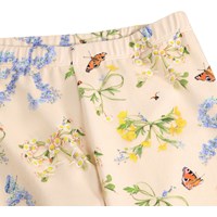 Rosa Leggings aus Bio-Baumwolljersey mit einem Druck von Schmetterlingen und Blumen. Sie haben einen weichen elastischen Bund, der optimalen Komfort und Passform gewährleistet.