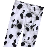 Schwarze und weiße Leggings aus dehnbarem Öko-Baumwolle mit einem elastischen Bund. Die weichen Leggings sind eng anliegend mit einem Allover-Panda-Print.