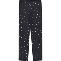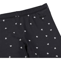 Sportliche schwarze Leggings mit einem weißen Herzmuster und einem weichen elastischen Bund, der optimalen Komfort und Passform gewährleistet.