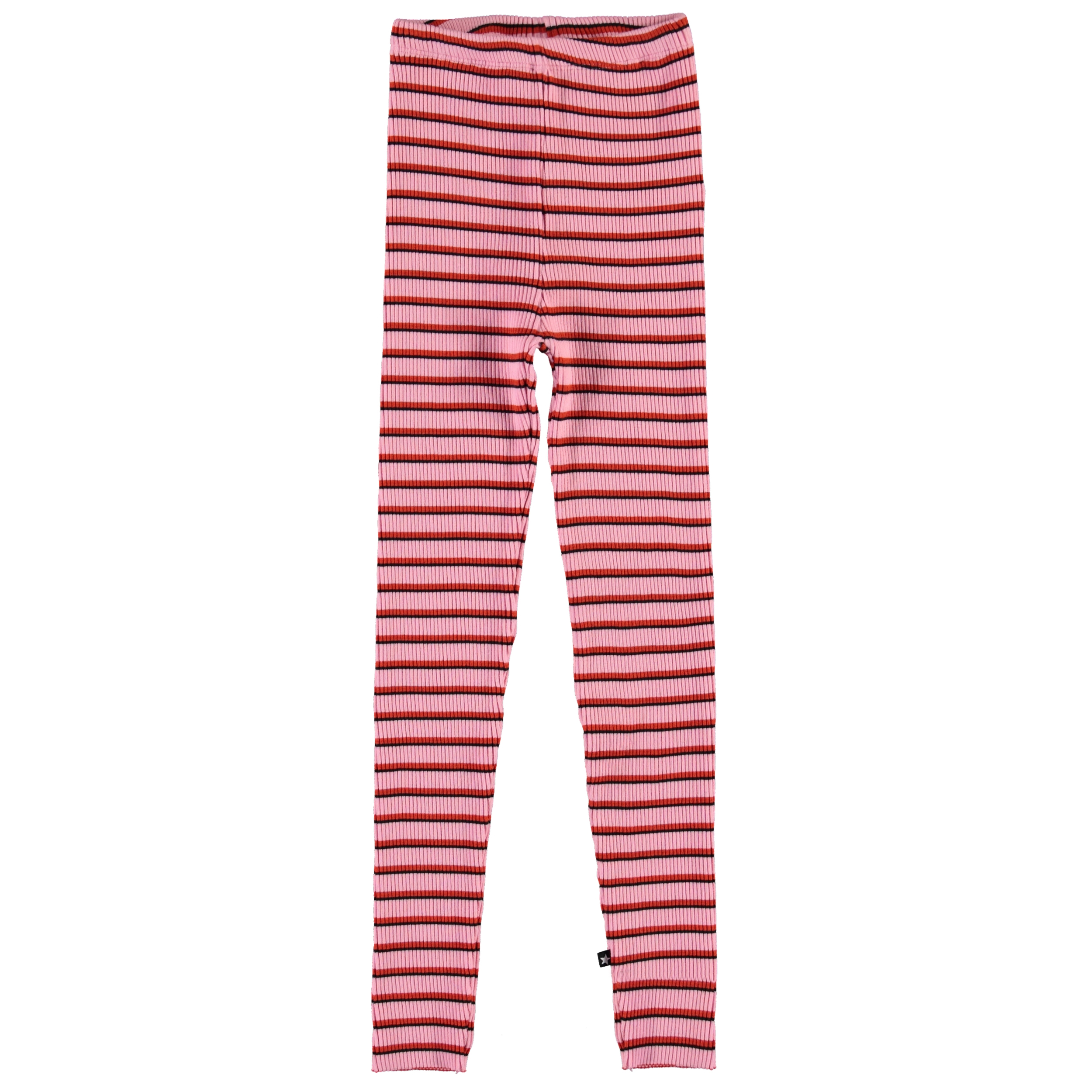 Nikita sind gestreifte Leggings in roten, rosa und schwarzen Ripp. Die Leggings haben eine elastische Taille, die eine bequeme Passform sichert.
