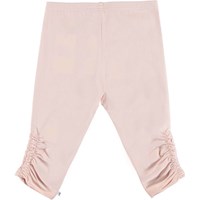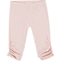 Kurze Leggings in Hellrosa mit Drapierung unten.
