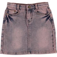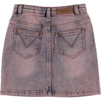 Babette ist ein Jeansrock in verwaschenem Pink. Der Rock hat eine maßgeschneiderte Passform sowie Gürtelriemen und Taschen vorne und hinten.