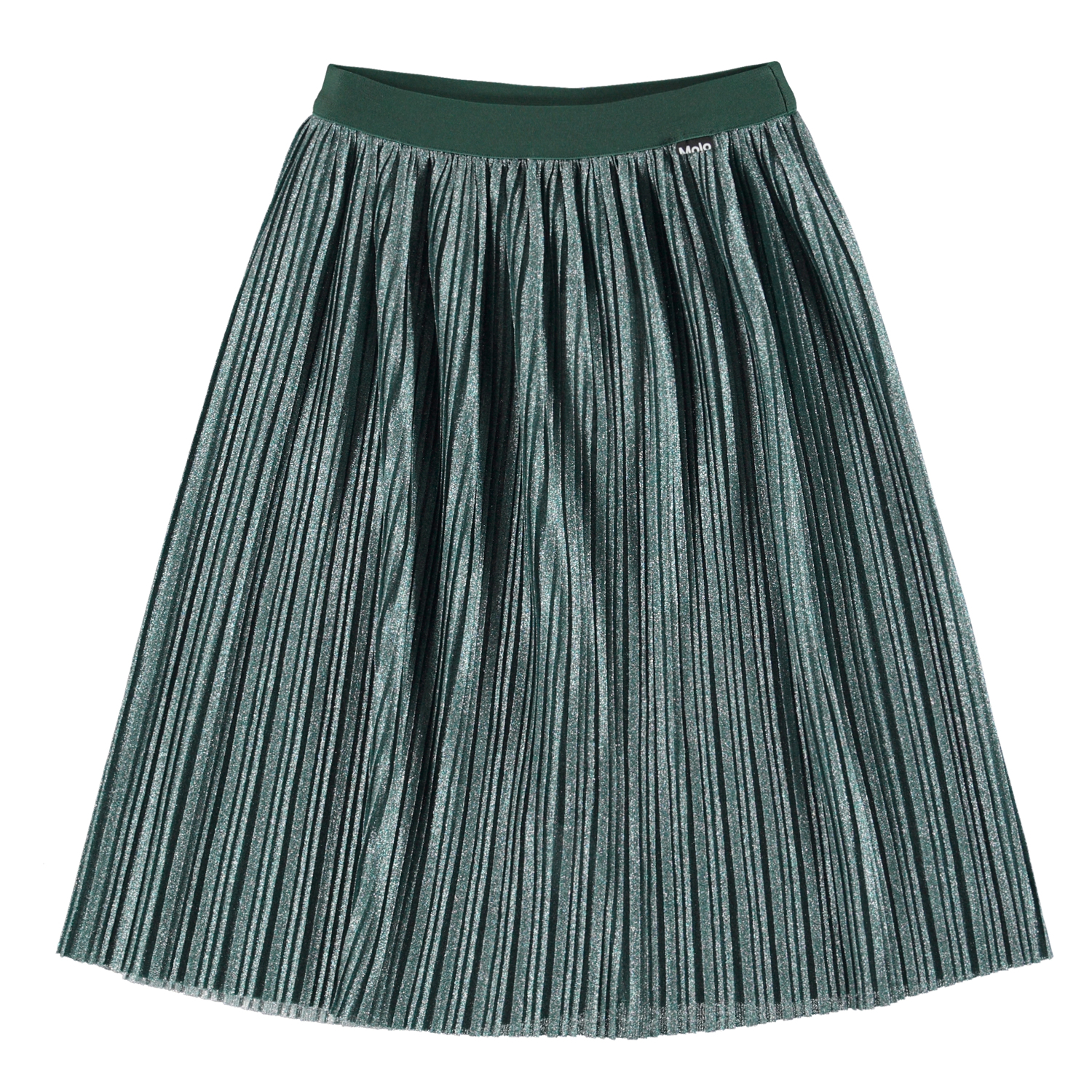 Der Bailini-Rock ist einer der Favoriten von Molo und sieht toll aus für Partys, aber auch für den Alltag mit einer lässigen Bluse. Der Rock ist hier in Grün mit viel Glitzer. Bailini ist plissiert und hat einen elastischen Bund, der für eine perfekte Passform sorgt.