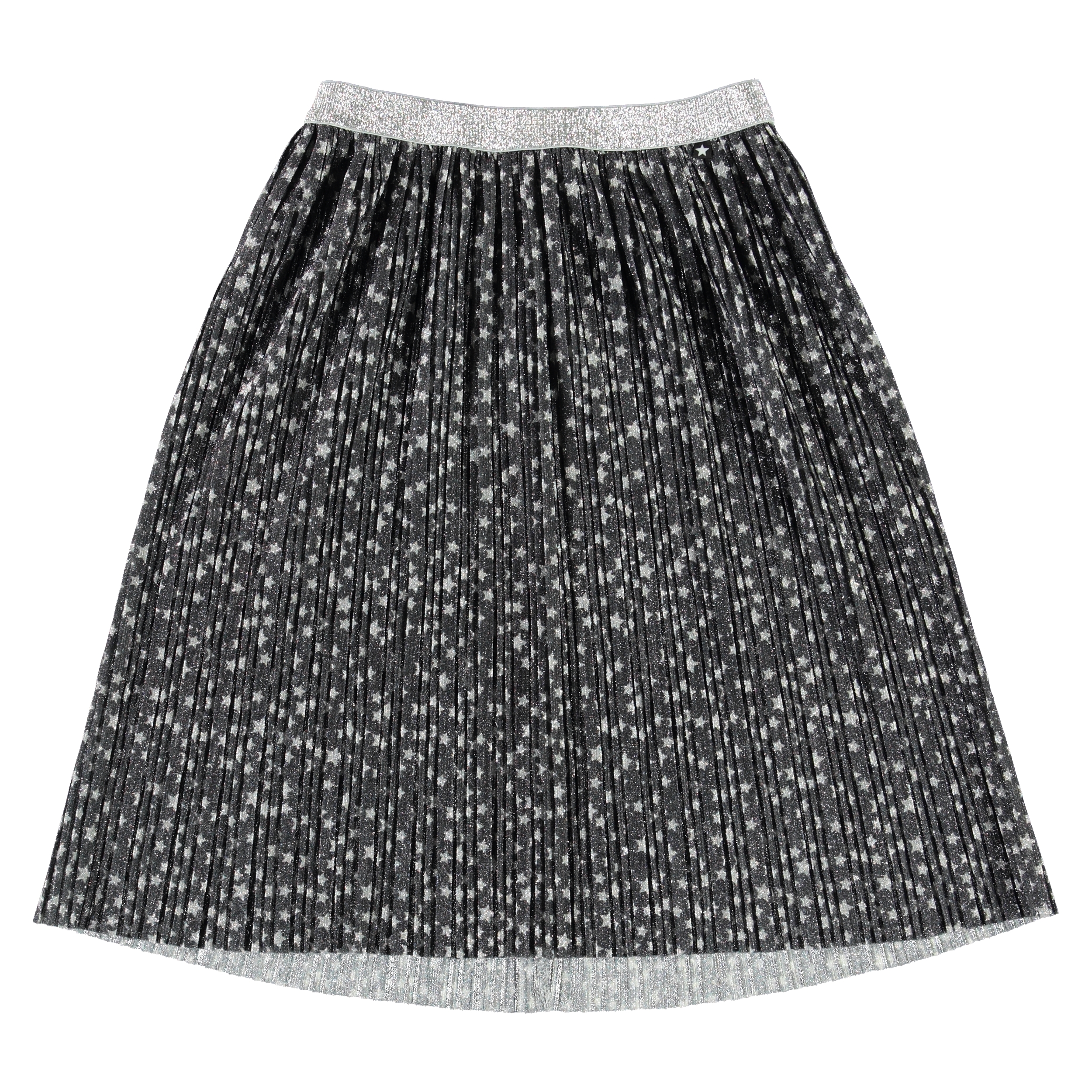 Der Bailini-Rock ist einer von Molos Favoriten und eignet sich hervorragend für eine Party, aber auch für den Alltag mit einer lässigen Bluse. Der Rock ist plissiert und grau mit Sternen und Glimmer sowie elastischer Taille in schönen Streifen.