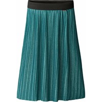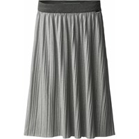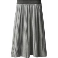 Plissierter Rock in Grau mit Glitzereffekt. Der Rock hat einen elastischen Bund, sodass er hoch in der Taille oder auf der Hüfte getragen werden kann. Die Länge des Rocks reicht bis zur Mitte des Schienbeins und fällt wunderschön.
