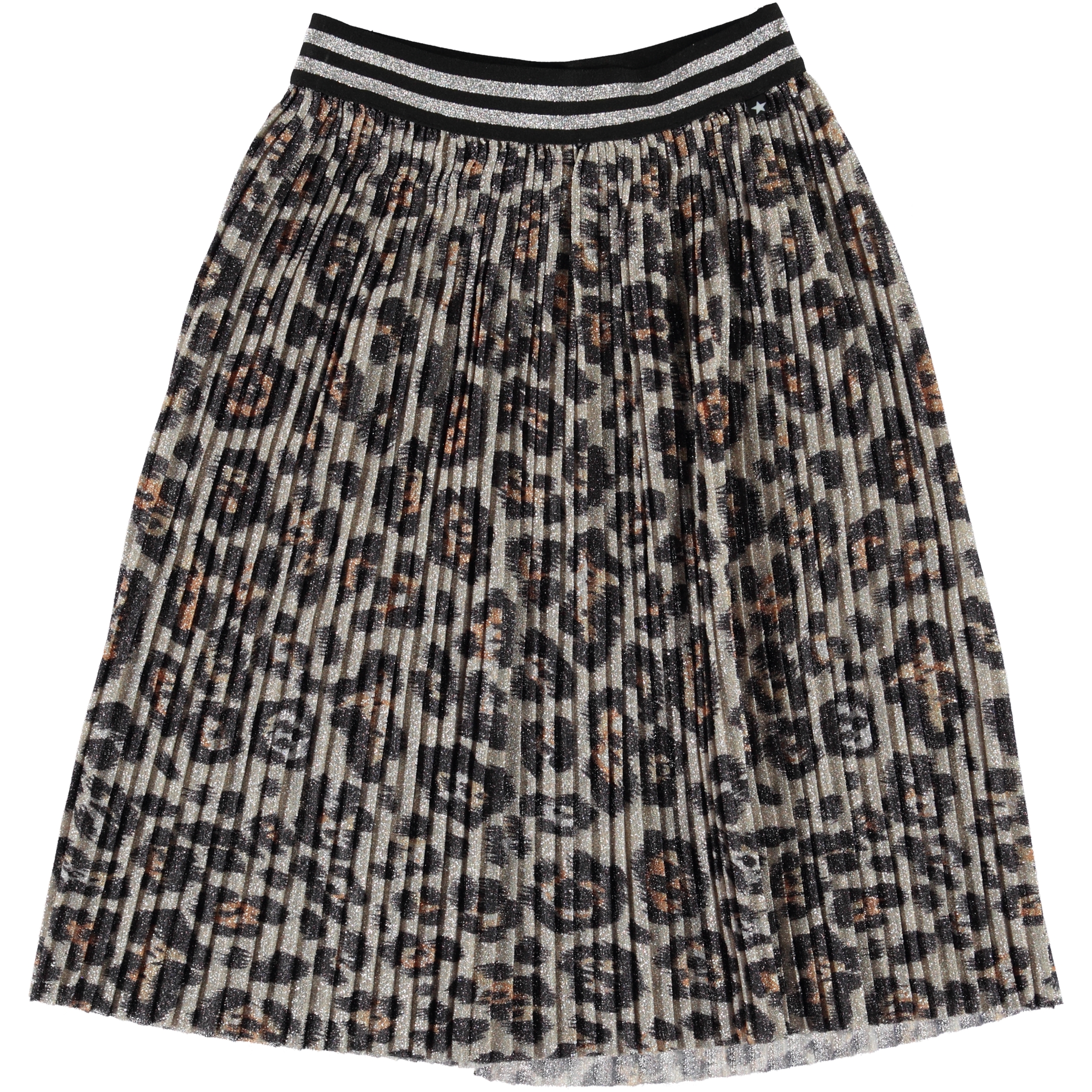 Der Bailini-Rock ist einer von Molos Favoriten und eignet sich hervorragend für eine Party, aber auch für den Alltag mit einem lässigen T-Shirt. Hier ist der Rock mit Leopardenflecken in Glitzer und gestreiften Glitzer-Taillenbändern.