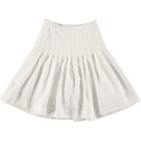 Baji ist ein weißer Rock mit einem plissierter Oberkante. Der Rock hat seitlich einen Reißverschluss.