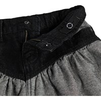 Wunderschöner zweifarbiger Jeansrock aus Öko-Baumwolle mit einzigartigem Design. Der Rock hat ein Panel an der Vorderseite und feine geraffte Details, die eine aufregende und schmeichelhafte Passform schaffen. Er hat drei praktische Taschen, Druckknöpfe bis Größe 140, danach wird er mit klassischen Jeansknöpfen geschlossen, und einen verstellbaren Bund für optimalen Komfort.