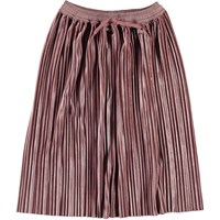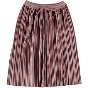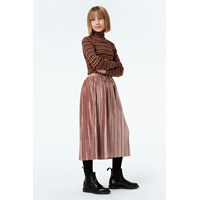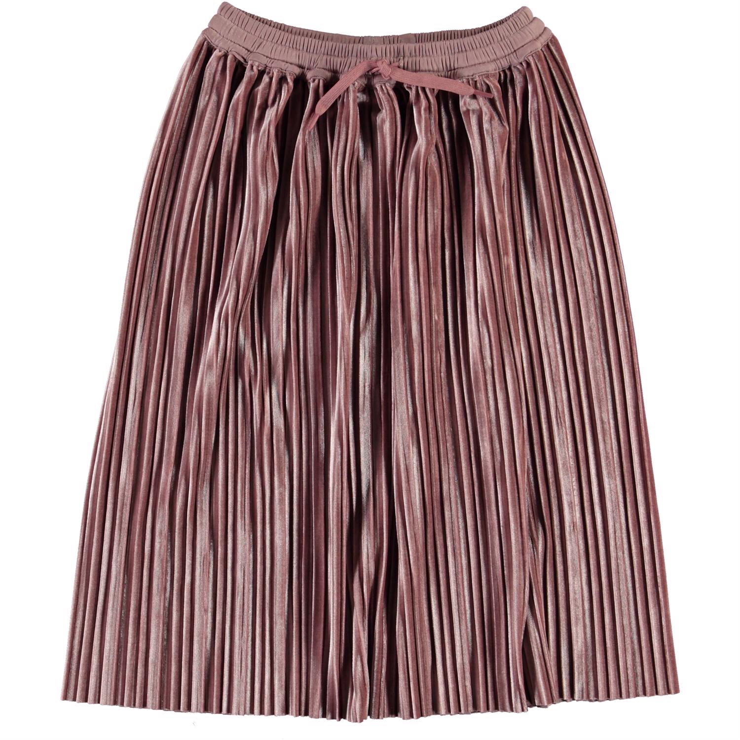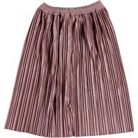 Becky ist ein plissierter rosa Velour-Rock mit guter Länge und Bindeband in der Taille.