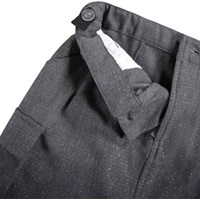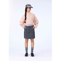 Grauer Rock mit Silberfaden. Der Rock ist knielang, hat eine normale Passform und die Taille hat Gürtelschlaufen, Knopf- und Reißverschluss sowie ein internes Gummiband in der Taille, um die richtige Passform für alle Kinder zu gewährleisten. Der Rock hat Vorder- und Gesäßtaschen sowie große Cargotaschen an den Seiten.