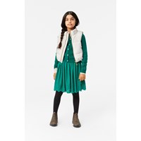 Grüner Minirock aus Öko-Baumwolle mit einem eleganten Spitzenmuster aus kleinen Blumen am unteren Saum des Rocks. Der Rock ist knielang, leicht anzuziehen und dank seines elastischen Bundes angenehm zu tragen.