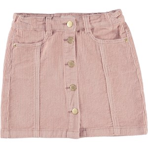 Rosa kurzer Rock aus geripptem Samt. Dieser Rock besteht aus 100% Baumwolle, hat Seitentaschen, goldfarbene Knöpfe auf der Vorderseite, Gürtelriemen und eine reguläre Passform. Die Taille des Rocks kann mit einem innen verstellbaren Gummiband angepasst werden, sodass sie für alle Kinder perfekt ist. Größen 92-134 haben Druckknöpfe, damit der Rock leicht an- und ausgezogen werden kann - Größen 140-176 haben normale Jeansknöpfe.