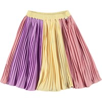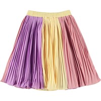 Mehrfarbiger, plissierter Midirock in Lila, Gelb und Rosa. Dieser Rock besteht aus 100% Polyester, was die schönen Falten möglich macht. Es hat einen Gummizug in der Taille, sodasss es leicht an- und auszuziehen ist, sowie eine normale Passform. Perfekt für den Alltag und Partys!