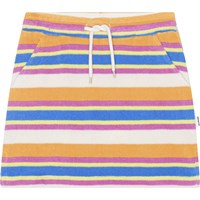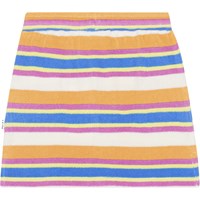 Gestreifter, knielanger Rock aus weichem Baumwollfrottee. Der Rock hat Taschen vorne, einen Gummizug in der Taille und einen Spitzenverschluss.