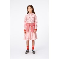 Staubiges rosa Rock aus Öko-Baumwolle mit Lochstickerei. Der Rock hat einen Unterrock, ist knielang, hat einen Gummizug in der Taille und eine Passe mit angenähtem Rockteil, die ihm Volumen verleiht. Kombinieren Sie ihn mit einem passenden Hemd im gleichen Material und in der gleichen Farbe und erhalten Sie ein komplettes Set.