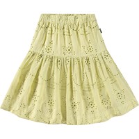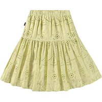 Staubiges grün Rock aus Öko-Baumwolle mit Lochstickerei. Der Rock hat einen Unterrock, ist knielang, hat einen Gummizug in der Taille und eine Passe mit angenähtem Rockteil, die ihm Volumen verleiht. Kombinieren Sie ihn mit einem passenden Hemd im gleichen Material und in der gleichen Farbe und erhalten Sie ein komplettes Set.