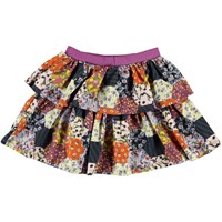 Bini ist ein Rock in Molos neuem Print 'Patchwork', der Blumen und Zitronen enthält. Der Rock hat zwei Schichten und eine elastische Taille in Lila.