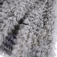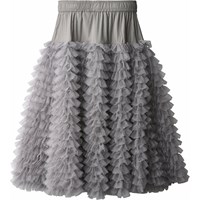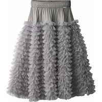 Grauer voluminöser Tüllrock mit elastischem Bund. Der Rock reicht bis zur Mitte des Schienbeins, hat eine lockere Passform mit den vielen Lagen Tüll, die wie Rüschen aussehen.