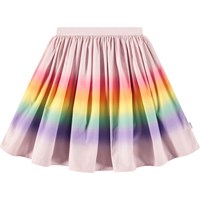 Rosa knielanger Rock aus Öko-Baumwolle. Der Rock hat einen festen Bund vorne, während er hinten elastisch ist, was das Anziehen erleichtert und angenehm zu tragen macht. Der Rock sammelt sich um die Taille und verleiht ihm ein schönes Volumen. Er hat einen Regenbogen-Druck.