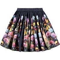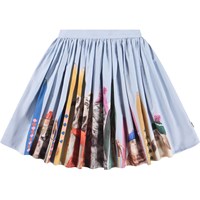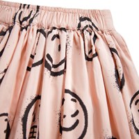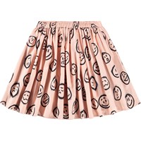 Leichter knielanger Rock aus Öko-Baumwolle mit einem Druck von Gesichtern in verschiedenen Stimmungen. Der Rock hat einen festen Bund vorne und ist hinten elastisch, um ihn leicht anzuziehen und bequem zu tragen. Der Rock sammelt sich um die Taille und verleiht ihm ein schönes Volumen.