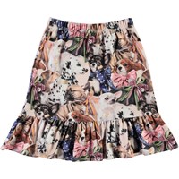 Bradie ist ein Wickelrock und elastischer Taille. Der Rock ist hier mit Druck von kleinen Hunden mit einer Schleife um den Hals.  Ecocert Greenlife, certifikationsnr. 197496