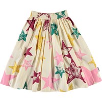 Bera ist ein heller langer Rock mit Sternen-Druck in verschiedenen Farben. Der Rock hat eine elastische Taille.
