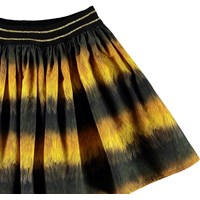 Brenda ist ein gelb-schwarz gestreifter Rock, der wie eine Biene aussieht. Der Rock hat eine elastische schwarze Taille mit schmalen goldenen Streifen.