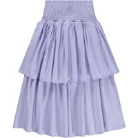 Lila, langer Rock aus weicher Baumwolle, mit einem breiten Smok am Bund, der eine flexible Passform gewährleistet und das Anziehen erleichtert. Der Rock besteht aus zwei Stofflagen, die ihm ein schönes Volumen und ein leichtes, lebendiges Aussehen verleihen.
