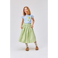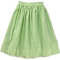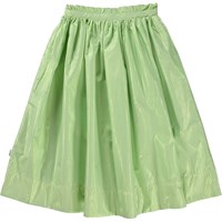 Brisa ist ein grüner Midirock mit grünem Metallic-Effekt. Der Rock hat eine geraffte Taille, die dem Rock Volumen verleiht, und einen verdeckten Reißverschluss an der Seite.