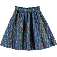 Brisani ist ein blauer Rock mit Druck von vertikalen Blumenreben. Der Rock ist in Baumwolle mit Reißverschluss an der Seite.