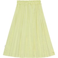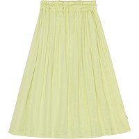 Hellgrüner, knielanger Rock mit Rüschen an der Taille. Der Rock besteht zu 100% aus Viskose, wodurch er schwer und elegant fällt. Der Rock hat einen Gummizug in der Taille, der das Anziehen und das Tragen erleichtert.