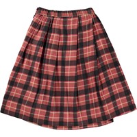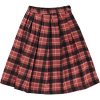 Rot-schwarz karierter Midirock. Dieser Rock im Grunge-Stil besteht aus einer Baumwoll-Viskose-Mischung, die ihn schön fallen lässt und sehr weich zu tragen ist. Es hat eine feste Taille mit seitlichem Reißverschluss und eine normale Passform.