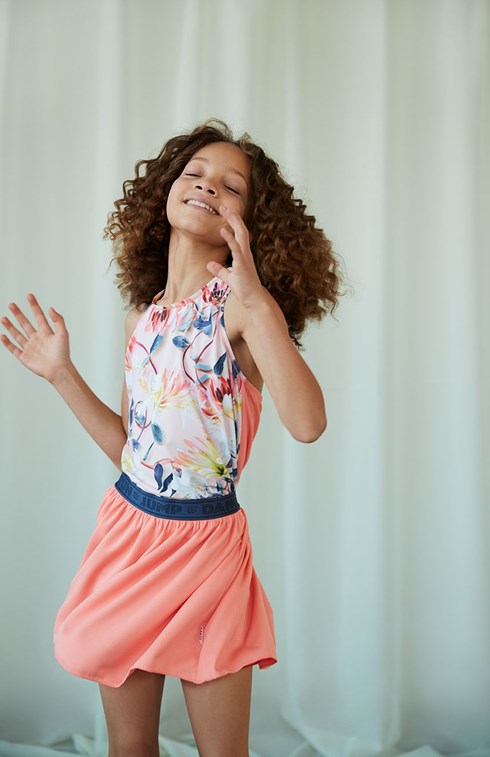 Ola ist ein korallenroter Rock mit einem dunkelblauen Gummibund mit aufgedrucktem Text. Der Rock hat orangefarbene Shorts unter dem Rock, was ihn unglaublich vielseitig macht. Ola ist Teil der Sportkollektion von Molo, die dabei hilft, Mode und Sport enger miteinander zu verbinden. Der Rock ist bequem und besteht aus technischen Materialien. Die Sportkollektion von Molo ist fertig