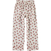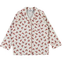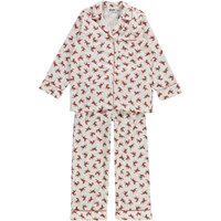 Zwei-geteilte Pyjamas in Weiß mit Aufdruck von kleinen dunkelroten Pferden und passenden Paspeln. Die Hose hat Bindeband in der Taille und der Pullover hat lange Ärmel.